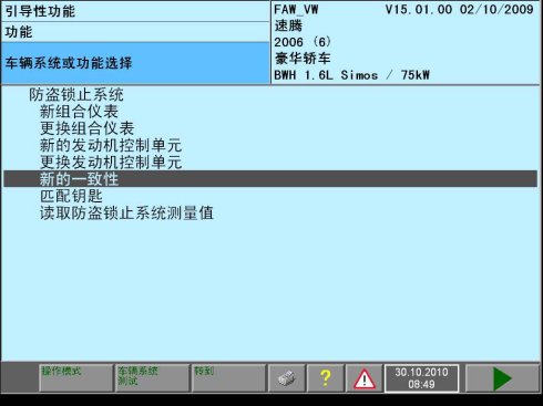 更换全车锁后,新的钥匙未与原车仪表防盗相识别,防盗模块内出现相应故障码。