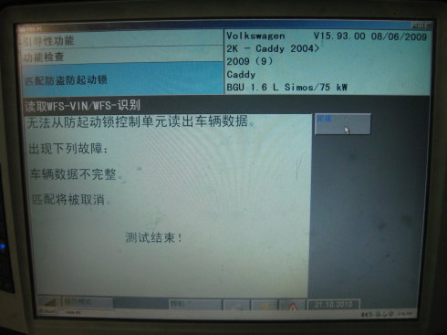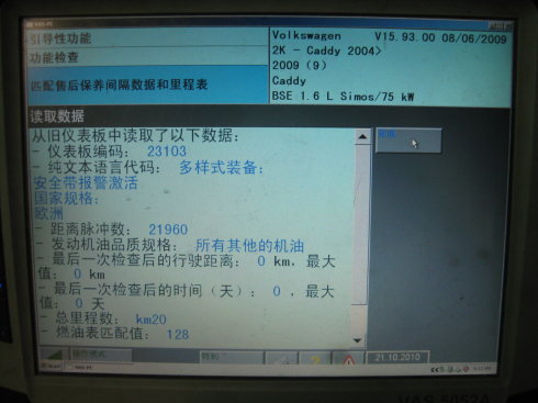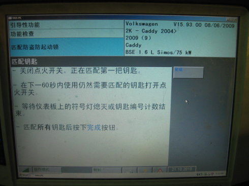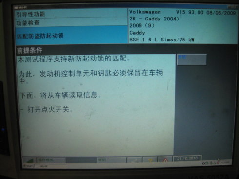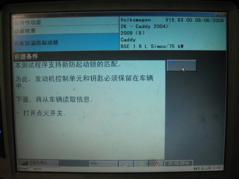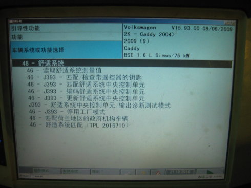 再选用进口车型CADDY2K的匹配功能,使可顺利执行