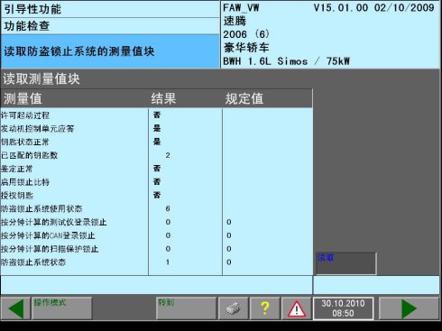 此时,防盗数据流显示处于防盗锁止系统状态1