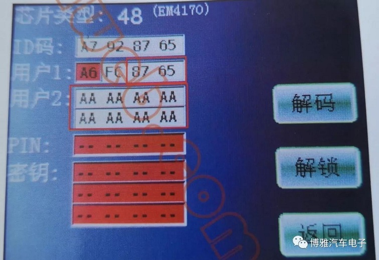 标记7为防盗匹配密码,将数据转十进制即使密码。