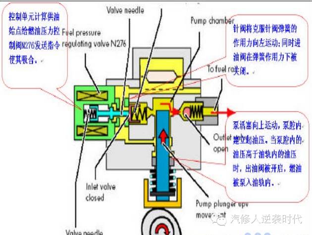 b. 燃油压力调节阀N276 故障,导致无法建立正常的高压(怠速时40bar 左右)