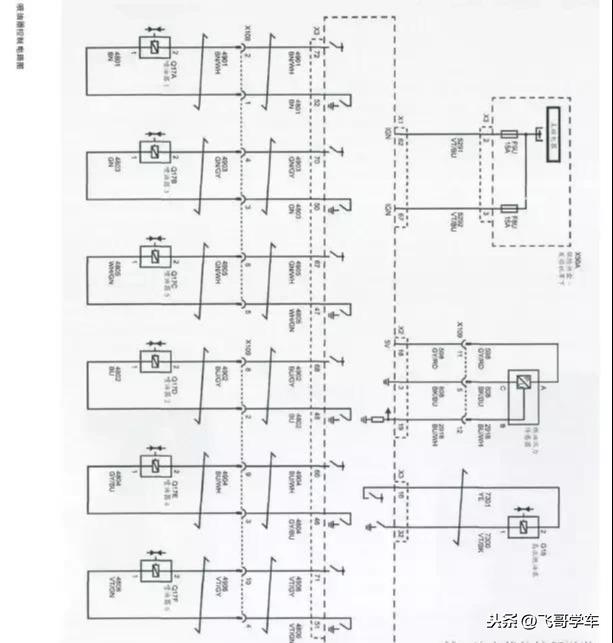 将损坏的插头上各针脚导线颜色和资料中各插头导线颜色比对,也不能确定3个插头的定位(通用车线路图针脚位置和导线颜色和实物有差异比较常见)。根据此车目前的状态先认为损坏的插头是X3了。