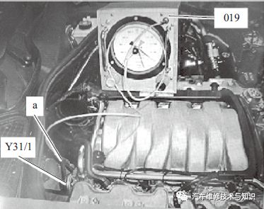 拆下废气再循环阀 将废气再循环阀装复,断开Y31/1废气再循环真空控制电磁阀(如下图所示)插头,发动机依旧抖动。若断开Y31/1废气再循环真空控制电磁阀的真空管,发动机则能恢复正常;若将真空管插好,发动机立刻抖动,看来问题很有可能出在此处。
