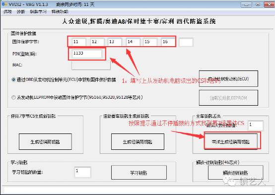 发动机电脑中可以找寻到6组CS和密码,我们再通过不停插拔的方式来找到第7组字节。