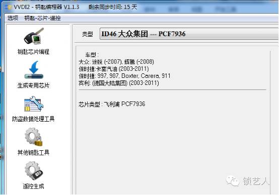 防盗芯片类型:46 NXP794x(电子芯片) 匹配前芯片状态: 使用VVD匹配,匹配前特殊专用46,或者使用原厂钥匙