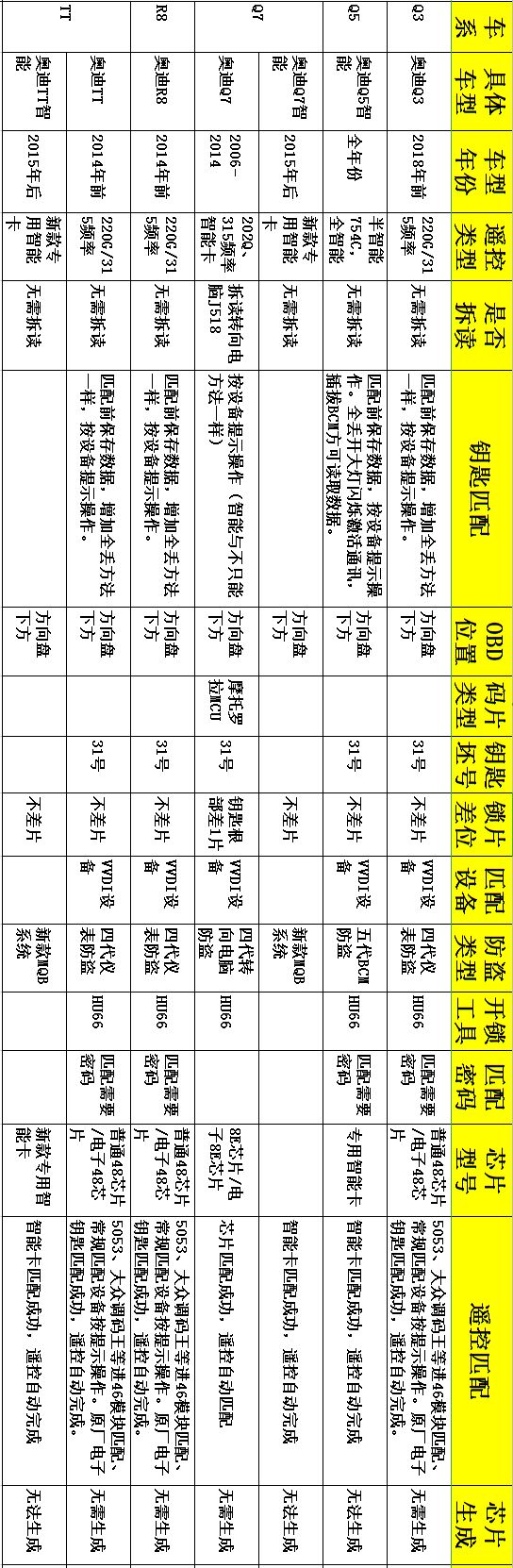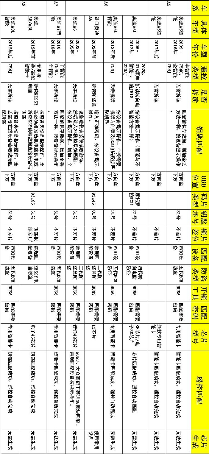 硬核|奥迪防盗匹配资料大全(1)