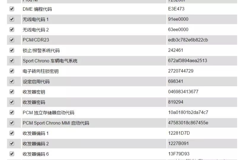 查出密码后,会出来一张全车密码表,上面有很多组密码,到底哪三个才是配钥匙要用到的密码呢?