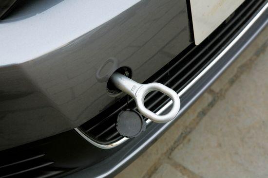 高尔夫6安装拖车钩的接口在右前保险杠上,用改锥撬开圆形盖板,把拖车钩拧入就行了。需要注意的是要拧紧,可以用轮毂螺栓扳手加力。